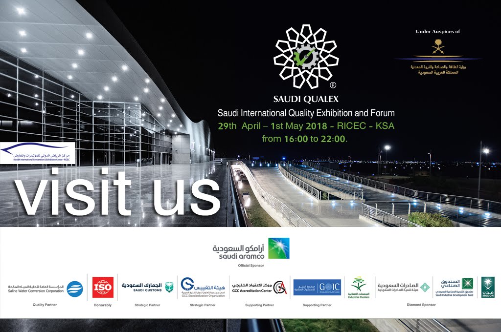 تبدأ يوم الأحد القادم 29 أبريل فعاليات المعرض والملتقى السعودي الدولي الثاني للجودة “سعودي كوالكس 2018” وذلك برعاية كريمة من معالي وزير الطاقة والصناعة والثروة المعدنية المهندس خالد بن عبد العزيز الفالح وتحت شعار “جودة الصناعة.. لاقتصاد متكامل ومستدام” وتستمر لمدة ثلاثة أيام، في مركز الرياض الدولي للمؤتمرات والمعارض.