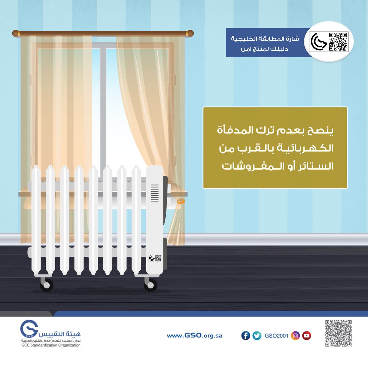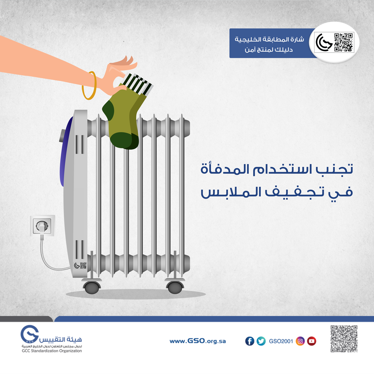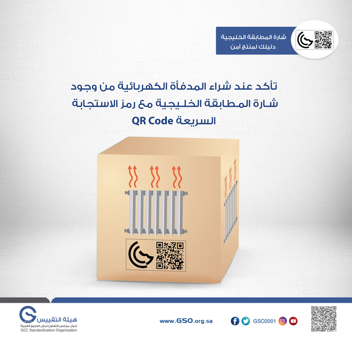 ونشرت الهيئة في حساباتها على مواقع التواصل الاجتماعي مجموعة من النصائح للمستهلك فيما يتعلق بأهمية اقتناء المدفأة التي تحمل شارة المطابقة الخليجية ورمز الاستجابة السريعة QR Code التي تعبر عن سلامة وأمان الأجهزة الكهربائية.